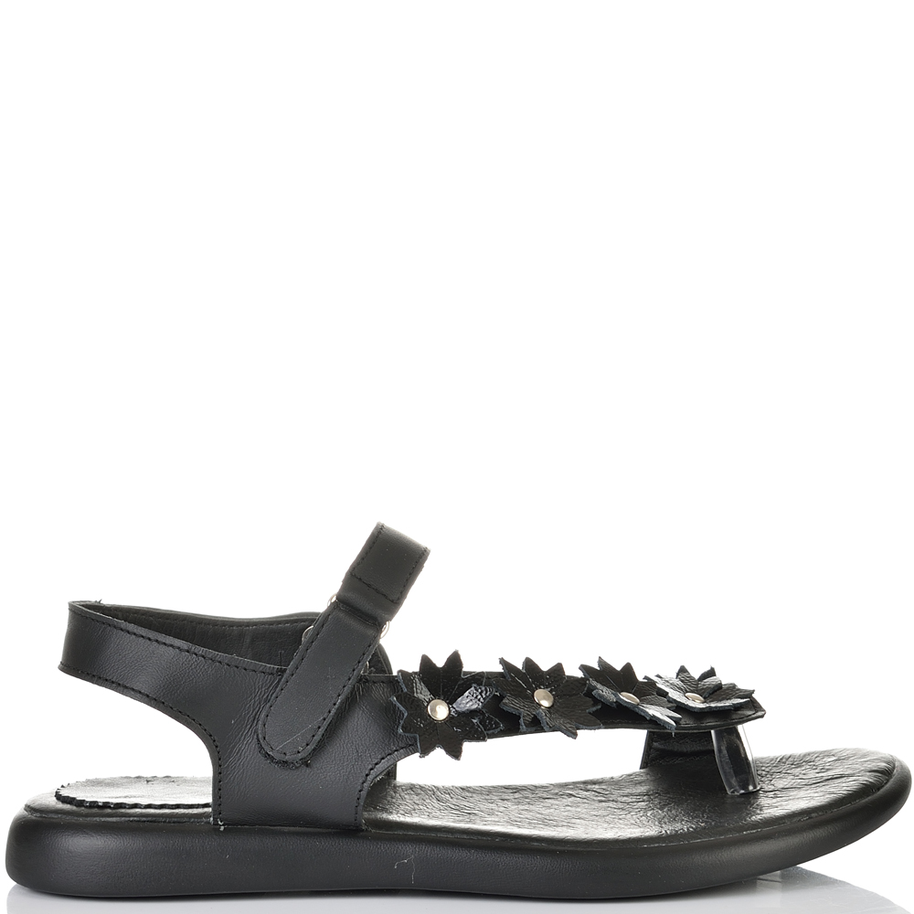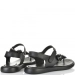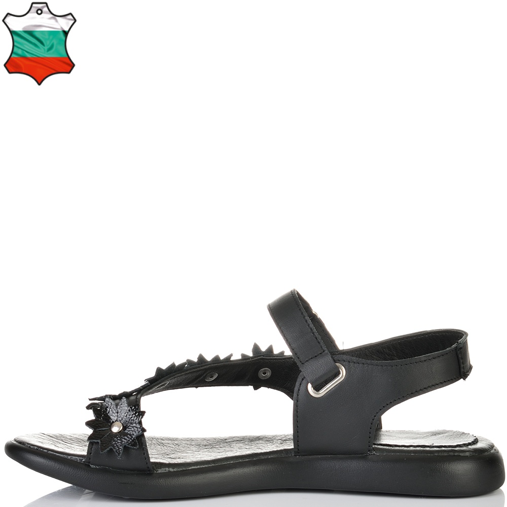 ДАМСКИ САНДАЛИ ОТ ЕСТЕСТВЕНА КОЖА И ЦВЕТЯ-C140-450-ЧЕРНИ