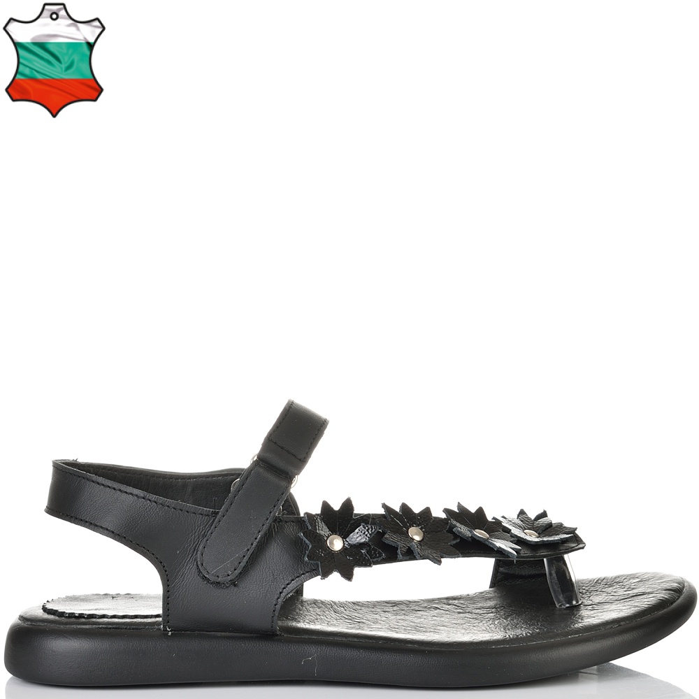 ДАМСКИ САНДАЛИ ОТ ЕСТЕСТВЕНА КОЖА И ЦВЕТЯ-C140-450-ЧЕРНИ
