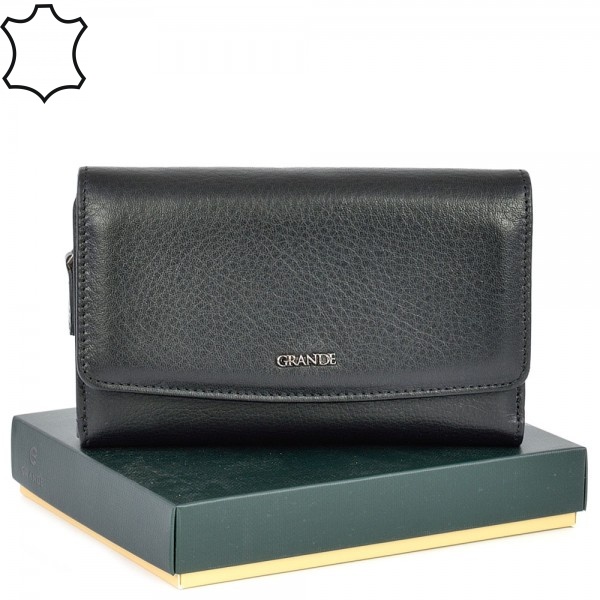 ДАМСКО ПОРТМОНЕ GRANDE ОТ ЕСТЕСТВЕНА КОЖА-2725-ЧЕРНО