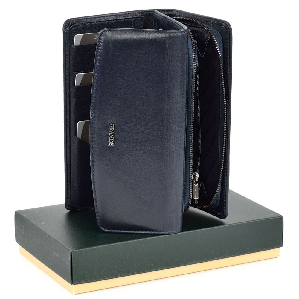 ДАМСКО ПОРТМОНЕ GRANDE ОТ ЕСТЕСТВЕНА КОЖА-2726-ТЪМНО СИНЬО