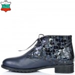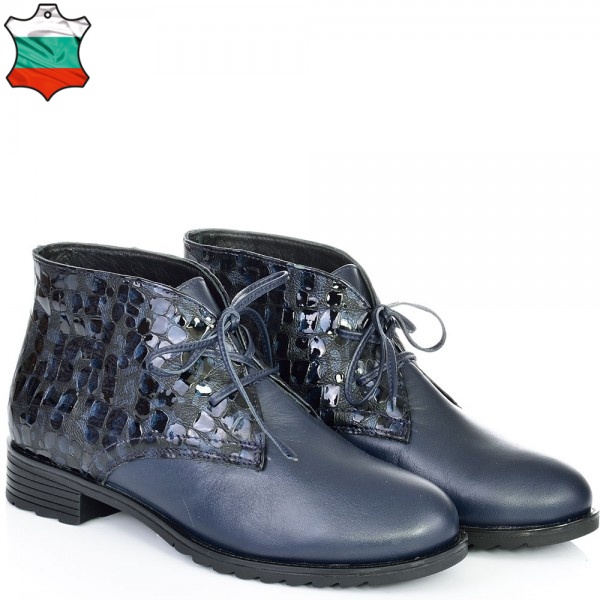 Дамски кларкове от естествена кожа тъмно сини, с кожени връзки и ефектна кожа. Вътрешната част на модела е с тънък, мек и топъл хастар. Ходилото е каучук и е изключително стабилно и не се пързаля на заледени и заснежени участъци. Този модел е перфектният избор за Вашата ежедневна визия