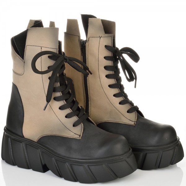 ДАМСКИ БОТИ ОТ ЕСТЕСТВЕН НАБУК-ASTRA 50-305-БЕЖОВО/ЧЕРНО