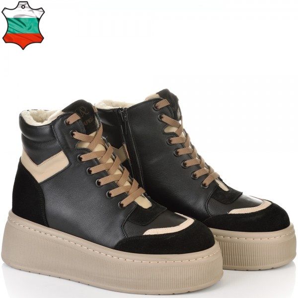 ДАМСКИ КЕЦОВЕ ОТ ЕСТЕСТВЕНА КОЖА И ТОПЛА ВАТА-C272-340-ЧЕРНИ