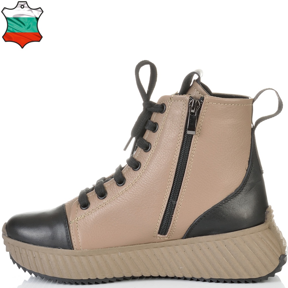 ДАМСКИ СПОРТНИ БОТИ ОТ ЕСТЕСТВЕНА КОЖА-060-1567-БЕЖОВО/ЧЕРНО