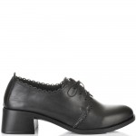 Този модел дамски обувки на ток са изработени от естествена кожа в черен цвят с нежна лазерна декорация в горната част на обувката, страхотен избор, който ще вдъхне стил и елегантност на вашата визия. Стелката на модела е с три меки зони – пета, свод и възглавничка. За такъв тип обувка на ток това е голямо предимство за комфорта на стъпалото, особено в зоната на възглавничката (метатарзалната кост). Тока е изключително стабилен и на височина подходяща за ежедневието, на работа в офиса или за различни официално поводи.