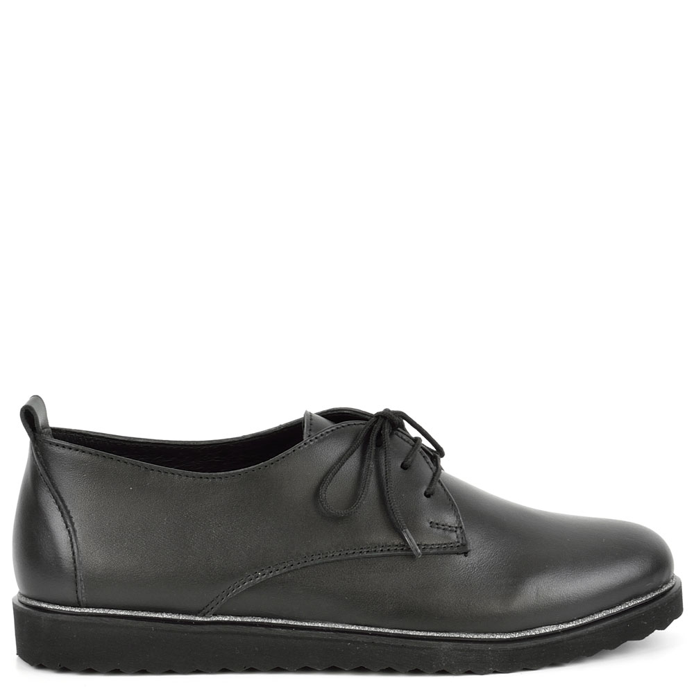 Дамски обувки от естествена кожа във вечно модерния и класически черен цвят. Висококачествената естествена кожа и перфектната изработка, придават стил и елегантност на модела. Тези обувки са подходящи за ежедневието, защото лесно се съчетава с много тоалети от рокли и поли, до дънки и панталони. И накрая, но не на последно място обувките са с мека стелка, а ходилото следва естествената линия и движения на походката.