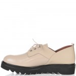 Дамски ежедневни обувки с връзки в съчетание на бежов лак с бежова кожа. Моделът изключително стилен и удобен и лесно се съчетава с всякакъв тип тоалети. Стелката е мека и се оформя по стъпалото на принципа на мемори пяна. Моделът е много лек, защото е изработен от олекотено полиуретаново ходило, което следва естествената линия на движение на походката.