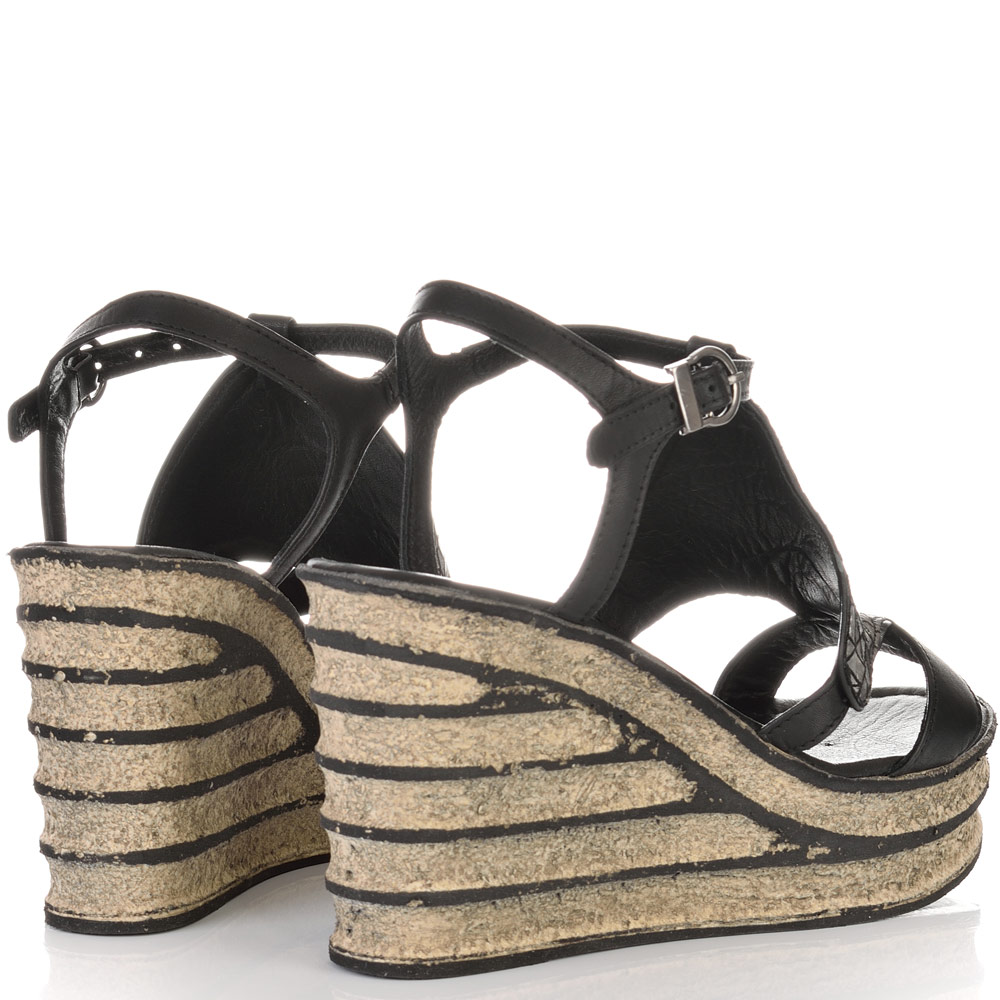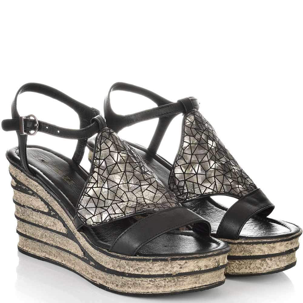 ДАМСКИ САНДАЛИ НА ПЛАТФОРМА ОТ ЕСТЕСТВЕНА КОЖА-4172-ЧЕРНИ