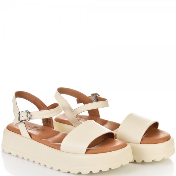 ДАМСКИ САНДАЛИ НА ПЛАТФОРМА ОТ ЕСТЕСТВЕНА КОЖА-5000-199-БЕЖОВИ