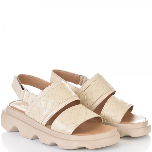 ДАМСКИ САНДАЛИ НА ПЛАТФОРМА ОТ ЕСТЕСТВЕНА КОЖА-E256-02-БЕЖОВИ