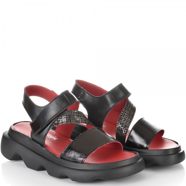 ДАМСКИ САНДАЛИ НА ПЛАТФОРМА ОТ ЕСТЕСТВЕНА КОЖА-E256-03-ЧЕРНИ