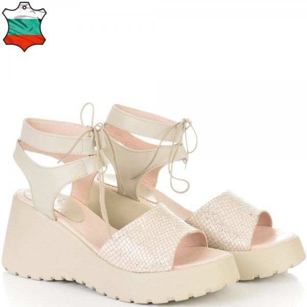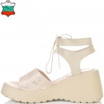 ДАМСКИ САНДАЛИ НА ПЛАТФОРМА ОТ ЕСТЕСТВЕНА КОЖА И ВРЪЗКИ-236503-1592-БЕЖОВИ