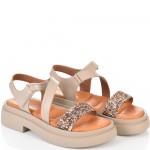 ДАМСКИ САНДАЛИ ОТ ЕСТЕСТВЕНА КОЖА И БРОКАТ-6008A-БЕЖОВИ