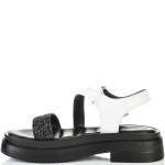 ДАМСКИ САНДАЛИ ОТ ЕСТЕСТВЕНА КОЖА И БРОКАТ-6008A-ЧЕРНО/БЯЛО