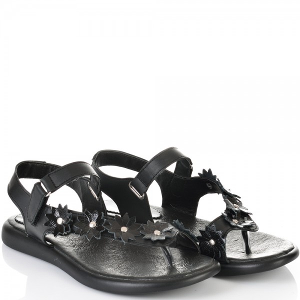 ДАМСКИ САНДАЛИ ОТ ЕСТЕСТВЕНА КОЖА И ЦВЕТЯ-C140-450-ЧЕРНИ