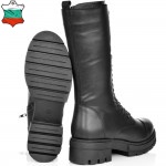 дамски ботуши от естествена кожа в класическо черно с ефектни връзки. Моделът е