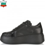 ДАМСКИ КЕЦОВЕ НА ПОВДИГНАТО ХОДИЛО ОТ ЕСТЕСТВЕНА КОЖА С БРОКАТ-7073A-ЧЕРНИ