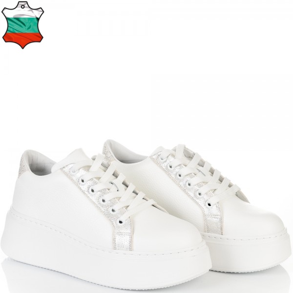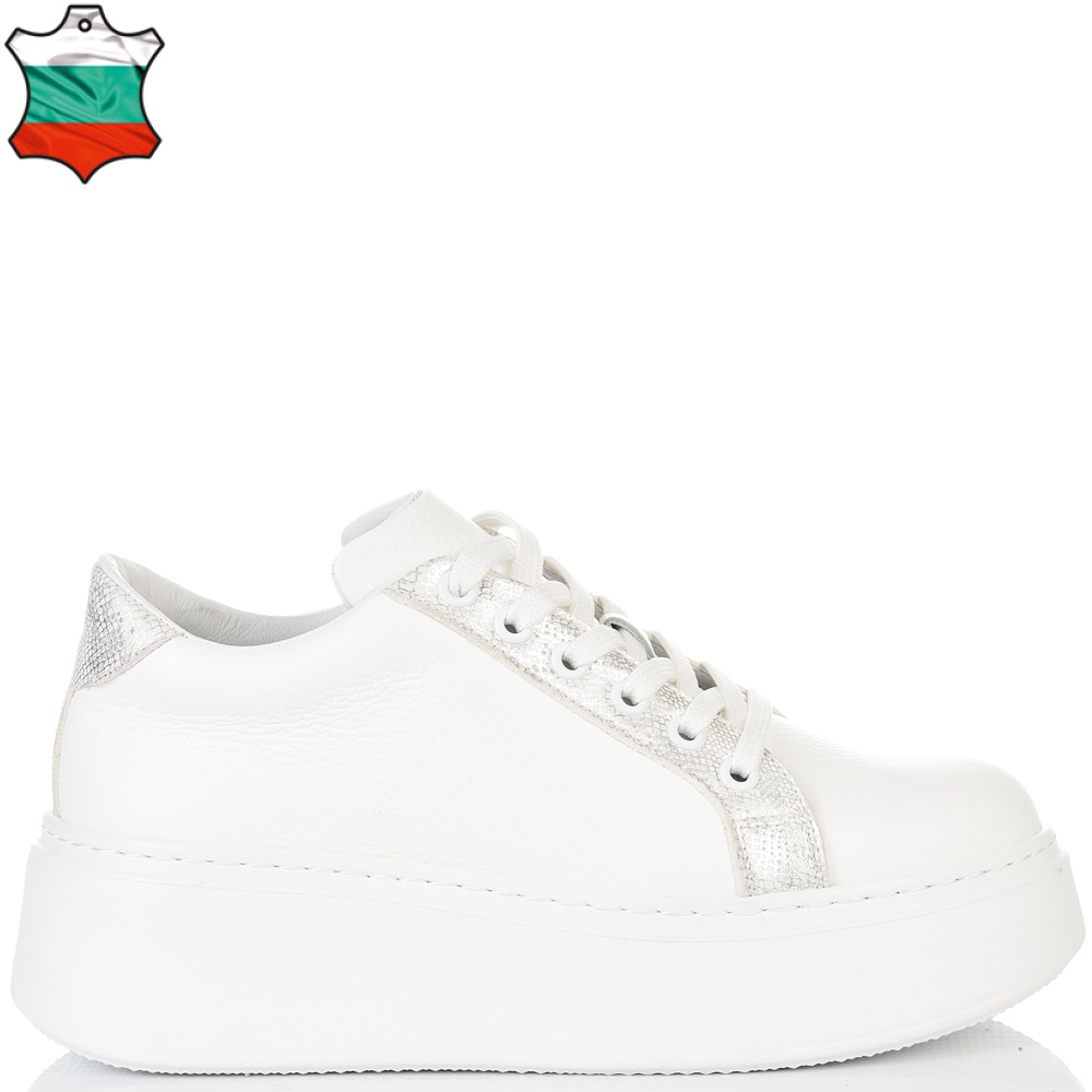 ДАМСКИ КЕЦОВЕ ОТ ЕСТЕСТВЕНА КОЖА-7073-БЯЛО/СРЕБЪРНО