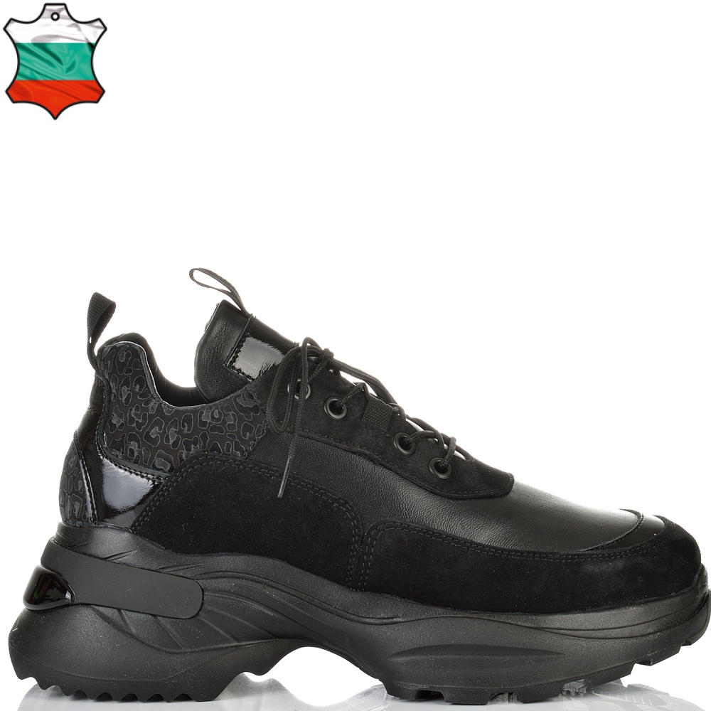 В нежно съчетание на черна напа с ефектна кожа с животински