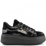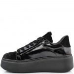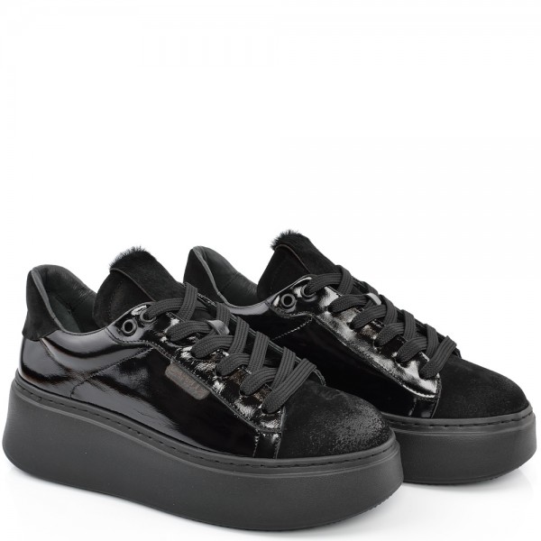 ДАМСКИ КЕЦОВЕ НА ПОВДИГНАТО ХОДИЛО ОТ ЕСТЕСТВЕН ЛАК С ВЕЛУР-C7080-ЧЕРНИ