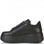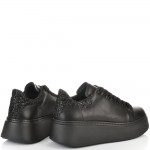 Класиката винаги е на мода! Семпли, но стилни с дискретен блясък в задната част при петата нашите кецове на високо повдигнато ходило в черна напа ще допринеса за твоята прекрасна визия в ежедневието и ще вкарат щипка блясък. Вътрешната част на модела също е изцяло от естествена кожа, а стелката е Footbed, която е изключително мека и се оформя по стъпалото на принципа на мемори пяна. В допълнение моделът е с олекотено полиуретаново ходило, шито и лепено, което перфектно допълва комфорта на модела и следва естествената линия на движение на краката. С тях ще бъдете просто неотразима