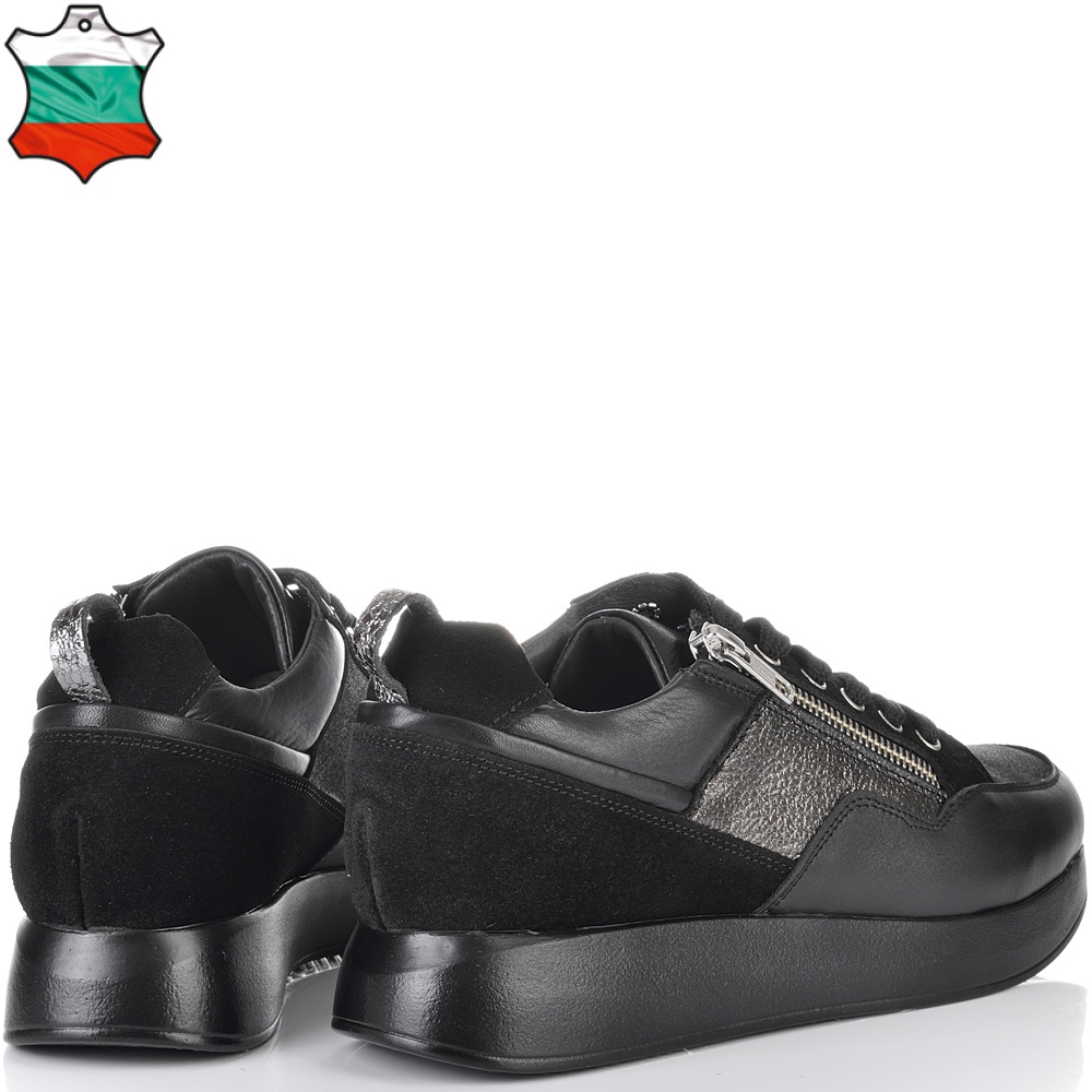 Дамски обувки в спортно-елегантна линия и стилно съчетание на различни и ефектни черни кожи ще Ви накарат да се чувствате прекрасно. Моделът е изключително практичен поради факта, че до връзките има действащ цип, който много улеснява обуването и събуването. Перфектен избор за Вашето ежедневие, защото лесно се съчетава с всякакъв тип тоалети. Стелката е мека и се оформя по стъпалото на принципа на мемори пяна. В допълнение моделът е много лек, защото е с олекотено полиуретаново ходило, което е много стабилно и перфектно допринася за цялостния комфорт на модела.