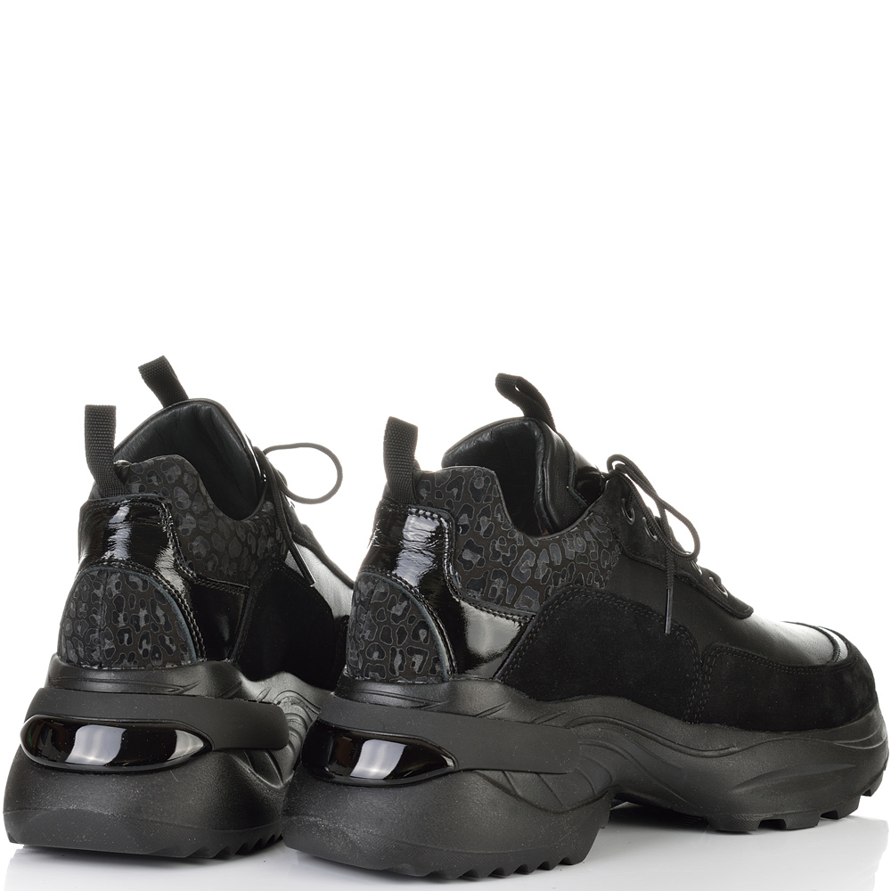 В нежно съчетание на черна напа с ефектна кожа с животински