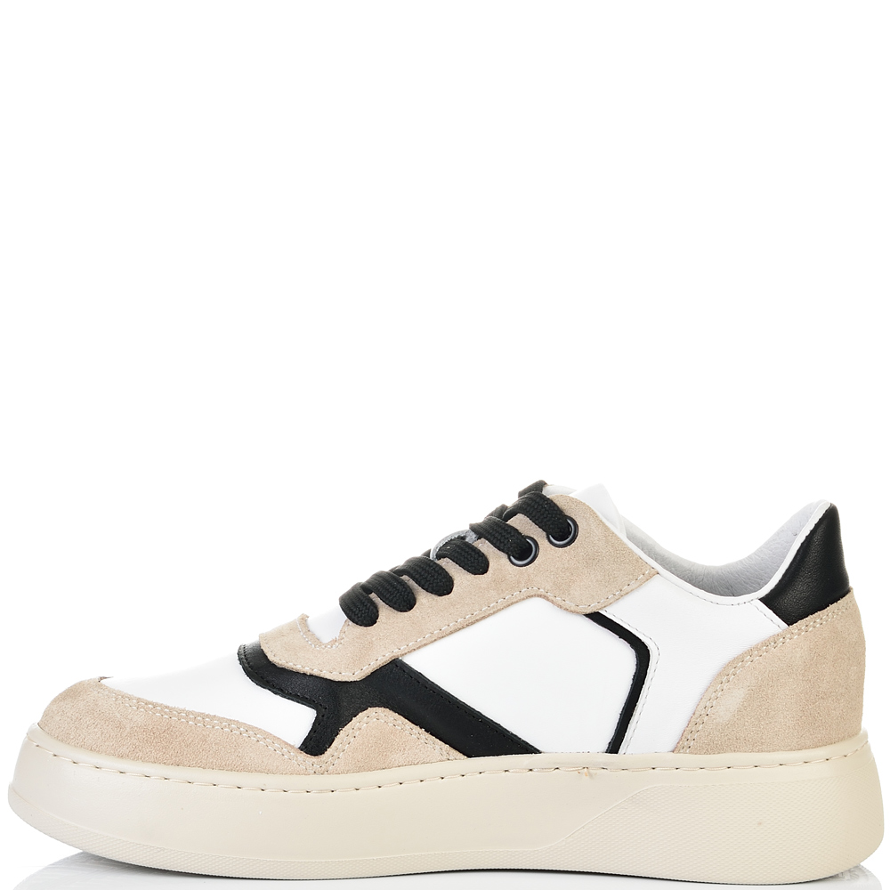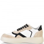 Стлен и страхотен нов модел. Кецовете са в нежно съчетание на бяла и черна кожа с бежов велур. Вътрешната част на модела също е изцяло от естествена кожа, а стелката е Footbed, която е изключително мека и се оформя по стъпалото на принципа на мемори пяна. В допълнение моделът е с олекотено полиуретаново ходило, шито и лепено, което перфектно допълва комфорта на модела и следва естествената линия на движение на краката.