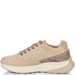 Стлни и нежни кецове в съчетание на различни варианти естествена кожа и велур в бежовата цветова гама на бежово ходило. Моделът ще допринесе завършеност и стил във вашата визия. Вътрешната част на модела също е изцяло от естествена кожа, а стелката е Footbed, която е изключително мека и се оформя по стъпалото на принципа на мемори пяна. В допълнение моделът е с олекотено полиуретаново ходило, шито и лепено, което перфектно допълва комфорта на модела и следва естествената линия на движение на краката.