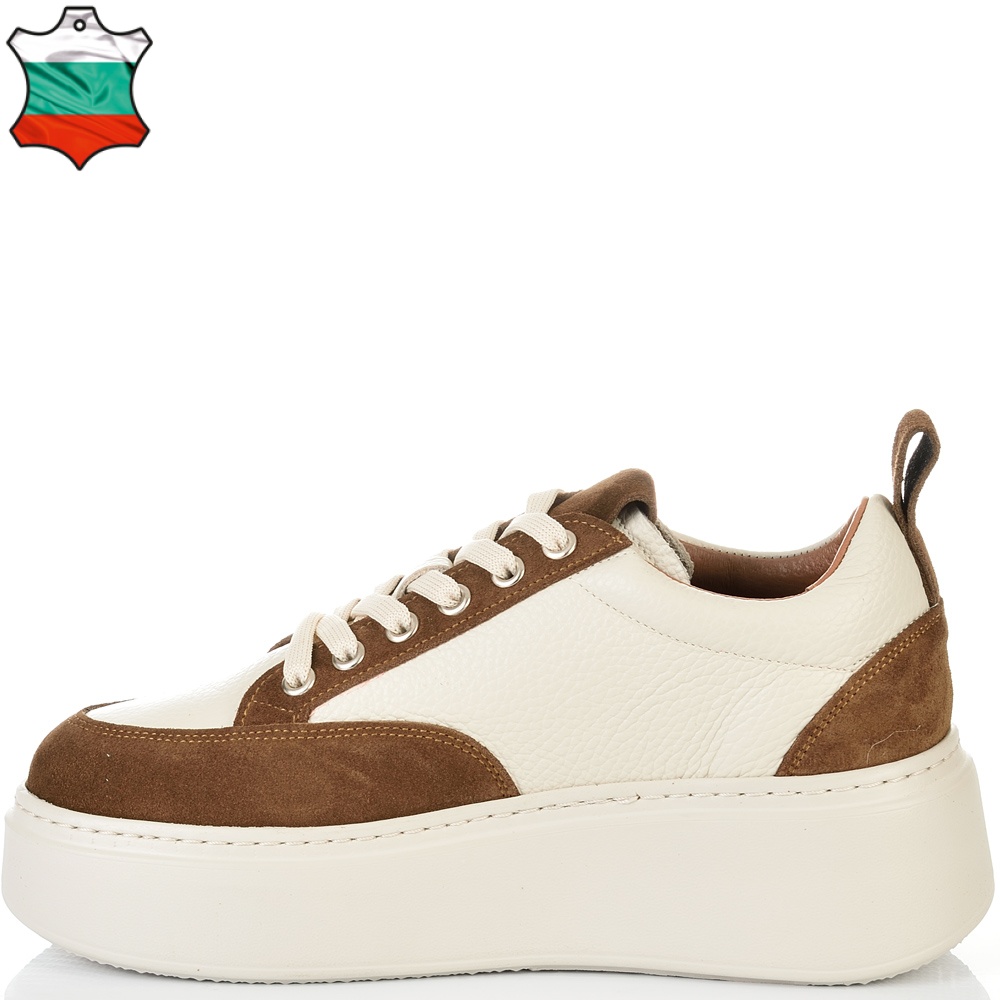 Перфектният избор за сезона! Защо ли? Защото този модел дамски кецове е изработен изцяло от естествена кожа в нежно съчетание на бежова кожа с таба велур с тези кецове ще имате свободата да ги съчетавате с всякакви тоалети. Вътрешната част на модела също е изцяло от естествена кожа, а стелката е Footbed, която е изключително мека и се оформя по стъпалото на принципа на мемори пяна. В допълнение моделът е с олекотено полиуретаново ходило, шито и лепено, което перфектно допълва комфорта на модела и следва естествената линия на движение на краката. С тях ще бъдете просто неотразима.