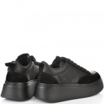 Този модел дамски кецове е изработен изцяло от естествена кожа. В перфектното съчетание на черна кожа шегрен и черен велур с тези кецове ще имате свободата да ги съчетавате с всякакви тоалети. Вътрешната част на модела също е изцяло от естествена кожа, а стелката е Footbed, която е изключително мека и се оформя по стъпалото на принципа на мемори пяна. В допълнение моделът е с олекотено полиуретаново ходило, шито и лепено, което перфектно допълва комфорта на модела и следва естествената линия на движение на краката. С тях ще бъдете просто неотразима.