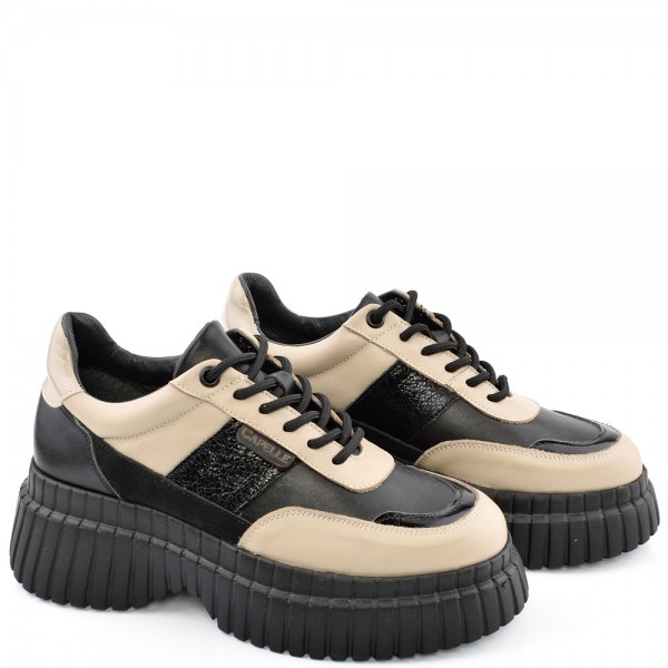 ДАМСКИ КЕЦОВЕ ОТ ЕСТЕСТВЕНА КОЖА С ЛАК И ВЕЛУР-ASTRA-6065-БЕЖОВО/ЧЕРНИ