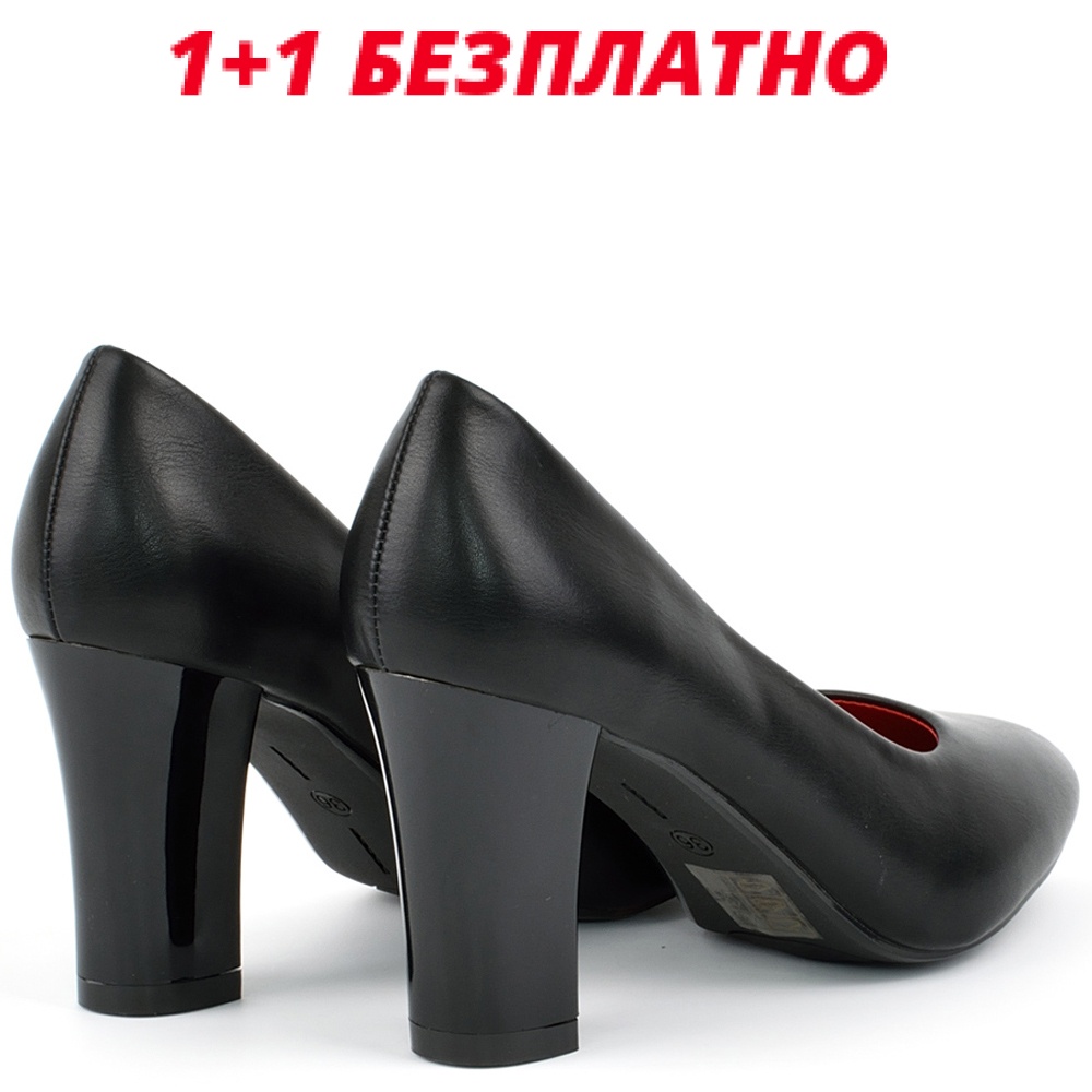 Дамски черни обувки на дебел и стабилен ток, моделът е със средна височина на тока, подходящ както са официални поводи така и за работа и ежедевието. Дебелина на подметката отпред-0,5см, ток-8см. Стелка: №35-23см. Всеки следващ номер е с 0,5см по-голям.