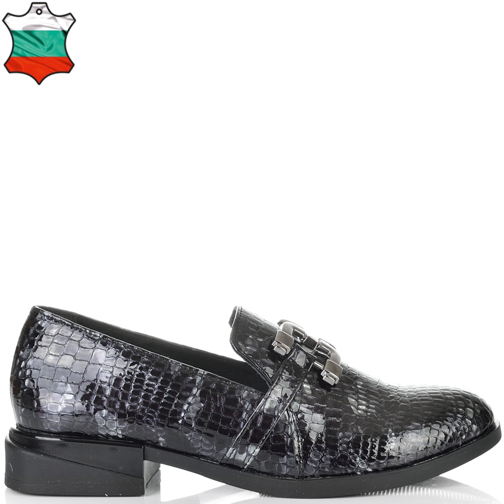 Дамски обувки тип мокасина на лек ток в невероятен ефектен лак със сребриста катарама. Топ модел за сезона изключително стилен и удобен с тях ще се чувствате неотразима. Стелката на модела е с три меки зони – пета, свод и възглавничка. Моделът е много лек, защото е изработен от олекотено и гъвкаво ходило, което следва естествената линия на движение на походката.