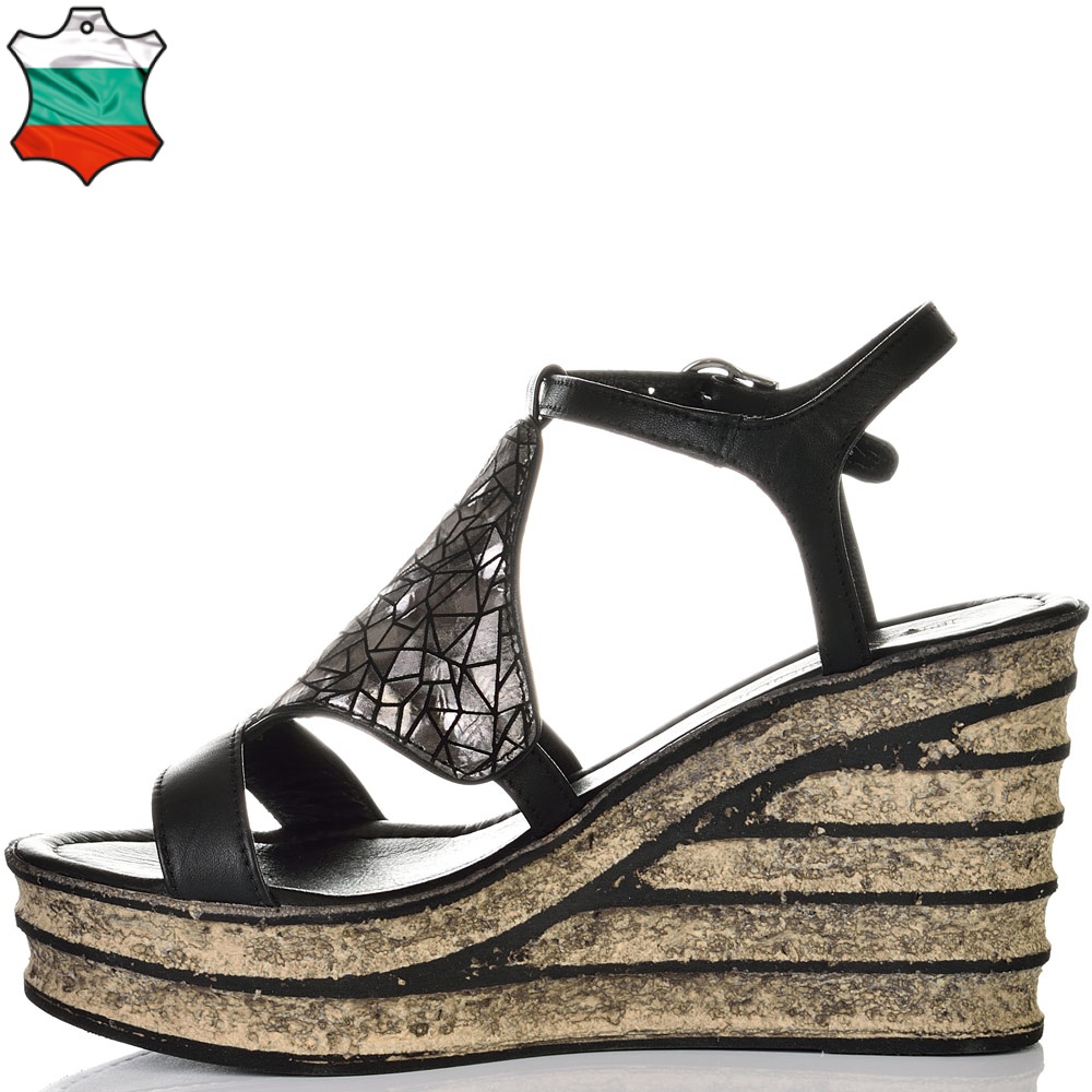 ДАМСКИ САНДАЛИ НА ПЛАТФОРМА ОТ ЕСТЕСТВЕНА КОЖА-4172-ЧЕРНИ