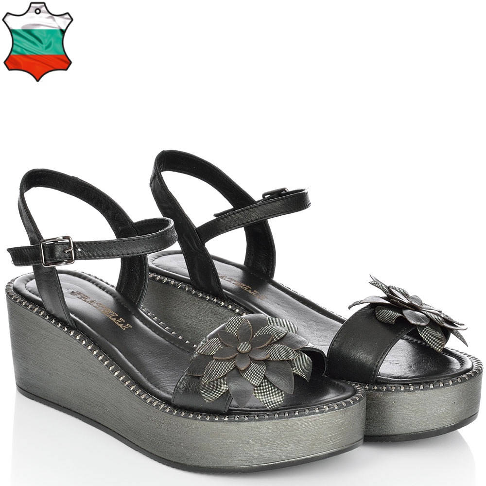 ДАМСКИ САНДАЛИ НА ПЛАТФОРМА ОТ ЕСТЕСТВЕНА КОЖА-4583-ЧЕРНИ