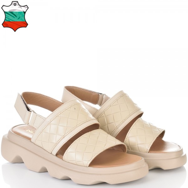 ДАМСКИ САНДАЛИ НА ПЛАТФОРМА ОТ ЕСТЕСТВЕНА КОЖА-E256-02-БЕЖОВИ