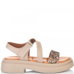 ДАМСКИ САНДАЛИ ОТ ЕСТЕСТВЕНА КОЖА И БРОКАТ-6008A-БЕЖОВИ