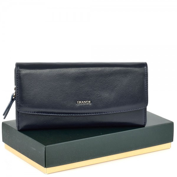 ДАМСКО ПОРТМОНЕ GRANDE ОТ ЕСТЕСТВЕНА КОЖА-2726-ТЪМНО СИНЬО