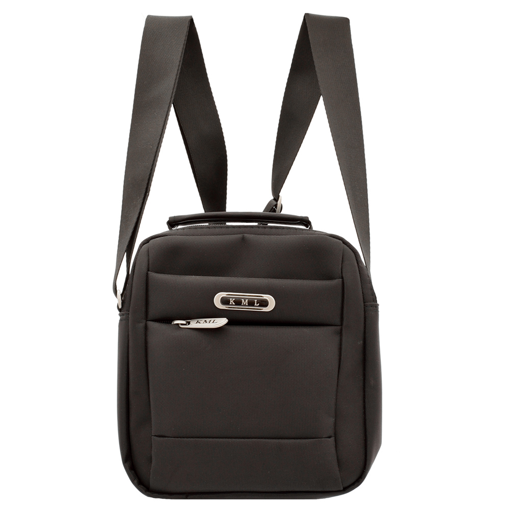 Мъжка чанта KML. Моделът е българско производство и е изработена от текстил. Чантата има 4-ри външни джоба с ципове и два вътрешни. Къса и дълга дръжка, на дългата дръжка се регулира дължината. Размери на чантата: височина-20см, дължина-20см, ширина-9см.