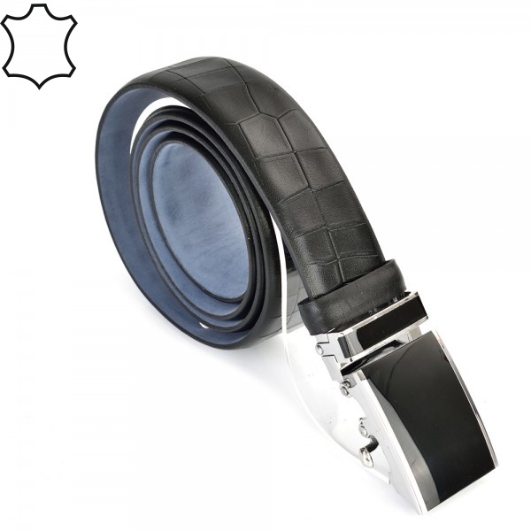КОЛАН ОТ ЕСТЕСТВЕНА БИВОЛСКА КОЖА-АВТОМАТИЧЕН С ПЛОЧКА-7457-ЧЕРЕН