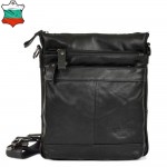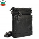 Мъжка черна чанта от естествена кожа, българско производство. Чантата има 4-ри външни джоба всеки с цип и два вътрешни-един с цип и един без цип. Дръжката е от текстил и дължината й се регулира. Размери на чантата: височина-28см, дължина-23см, ширина-4см.