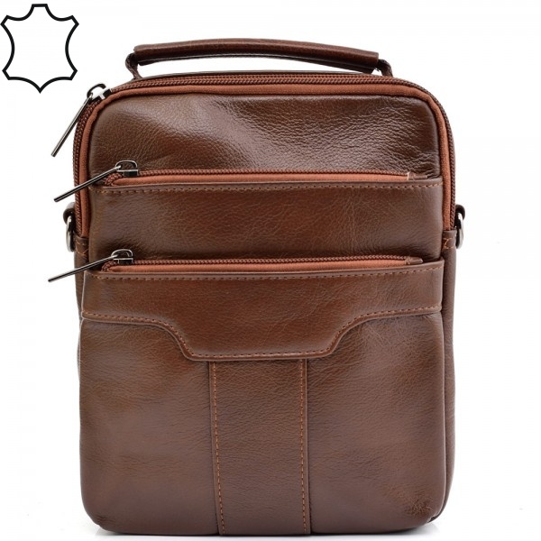 МЪЖКА ЧАНТА ОТ ЕСТЕСТВЕНА КОЖА-6007-КАФЯВА