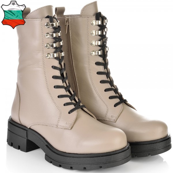 Класически модел дамски боти от естествена кожа е бежов цвят. Тези
