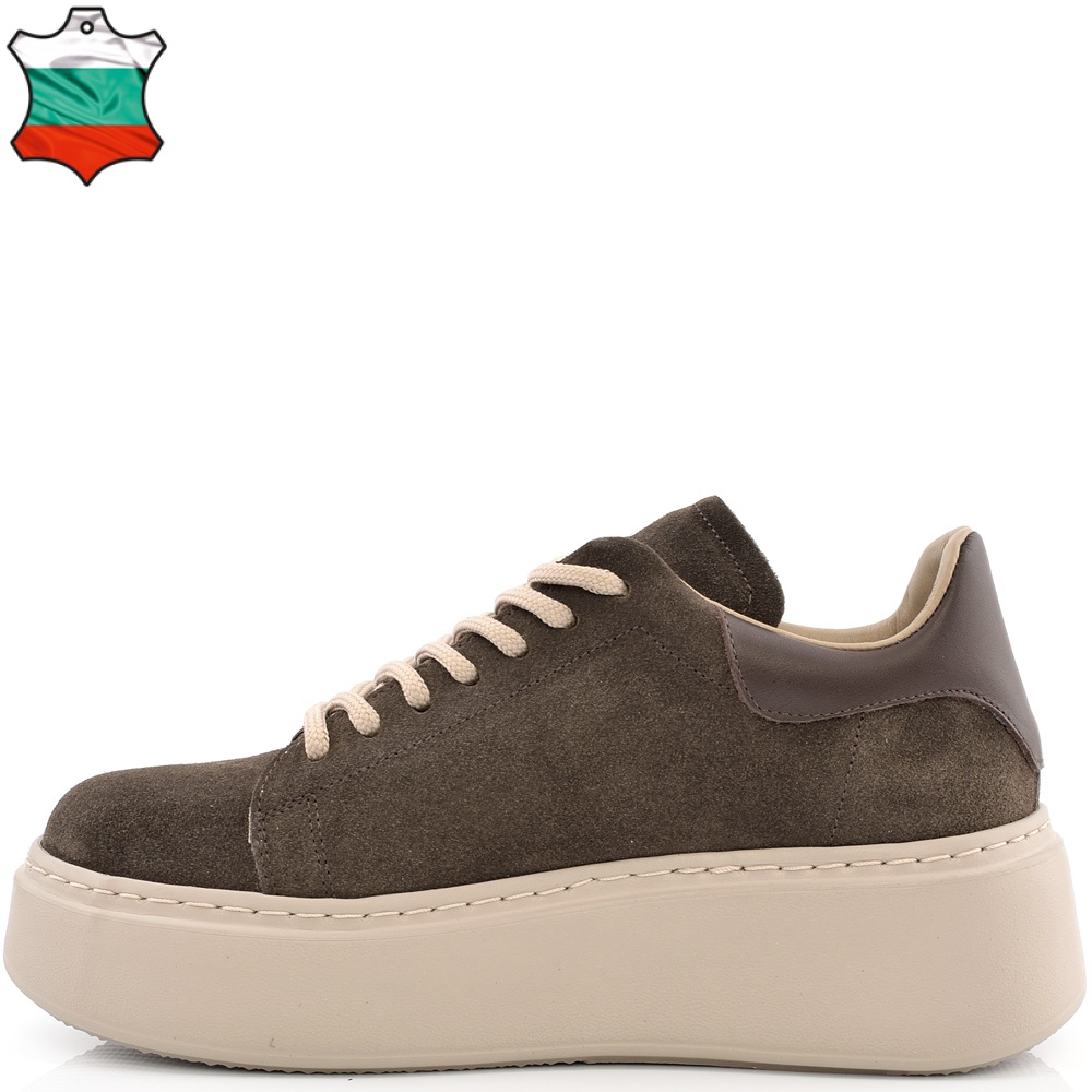ДАМСКИ КЕЦОВЕ НА ПОВДИГНАТО ХОДИЛО ОТ ЕСТЕСТВЕН ВЕЛУР-C7070-КАФЯВИ