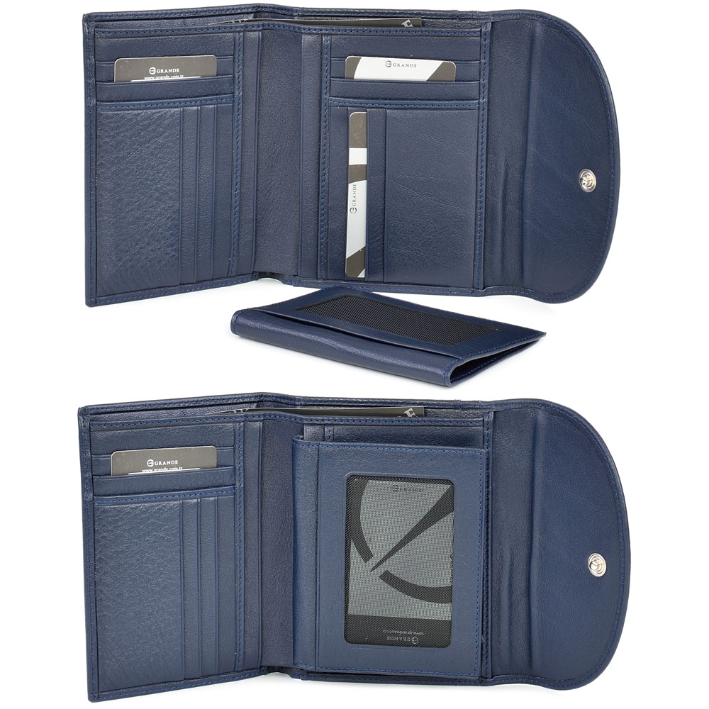ДАМСКО ПОРТМОНЕ GRANDE ОТ ЕСТЕСТВЕНА КОЖА-3206-ТЪМНО СИНЬО