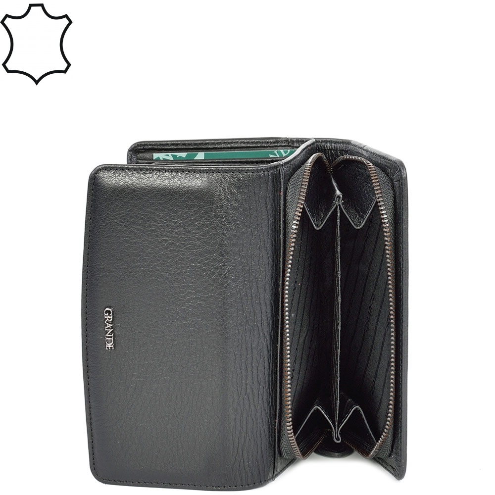 ДАМСКО ПОРТМОНЕ GRANDE ОТ ЕСТЕСТВЕНА КОЖА-2725-ЧЕРНО