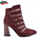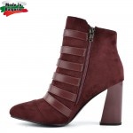 Български дамски боти от велур и еко кожа на висок и стабилен ток с каишки в черен цвят. Моделът е л..