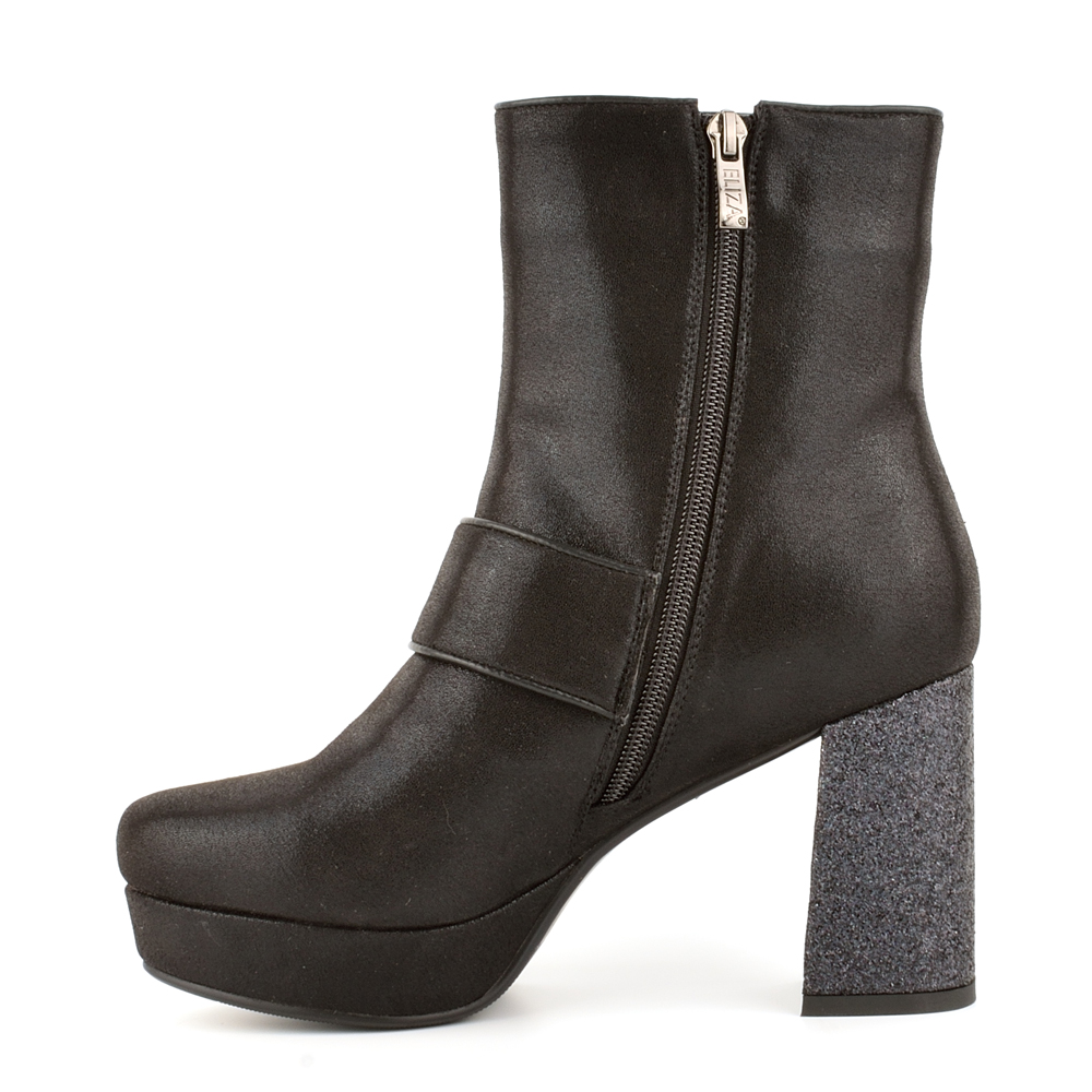 Български дамски боти на платформа и блестящ ток. Моделът е изработен от еко кожа и е много стабилен, защото има дебела платформа отпред.