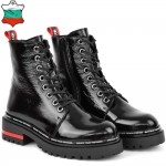 Комфорта и удобството през зимата са най-важните неща и затова ние ти предлагаме страхотни боти от естествен мачкан лак в черен цвят, нежни акценти на ходилото. Вътрешната част на модела е с тънък, мек и топъл хастар подходящ за зимата. Ботите са термокаучуково ходило, което е много стабилно и не се пързаля на заледени и заснежени участъци.